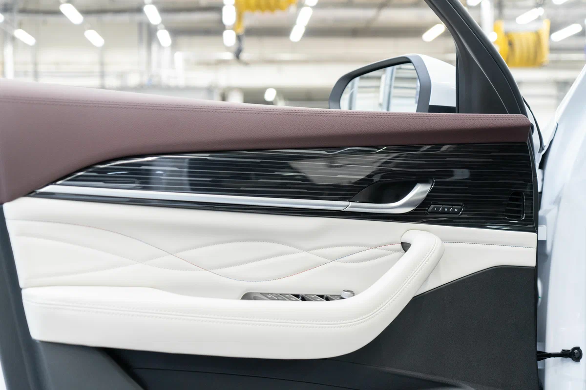 - Отделка дверей и боковых панелей мягким текстилем, вставки из искусственной кожи